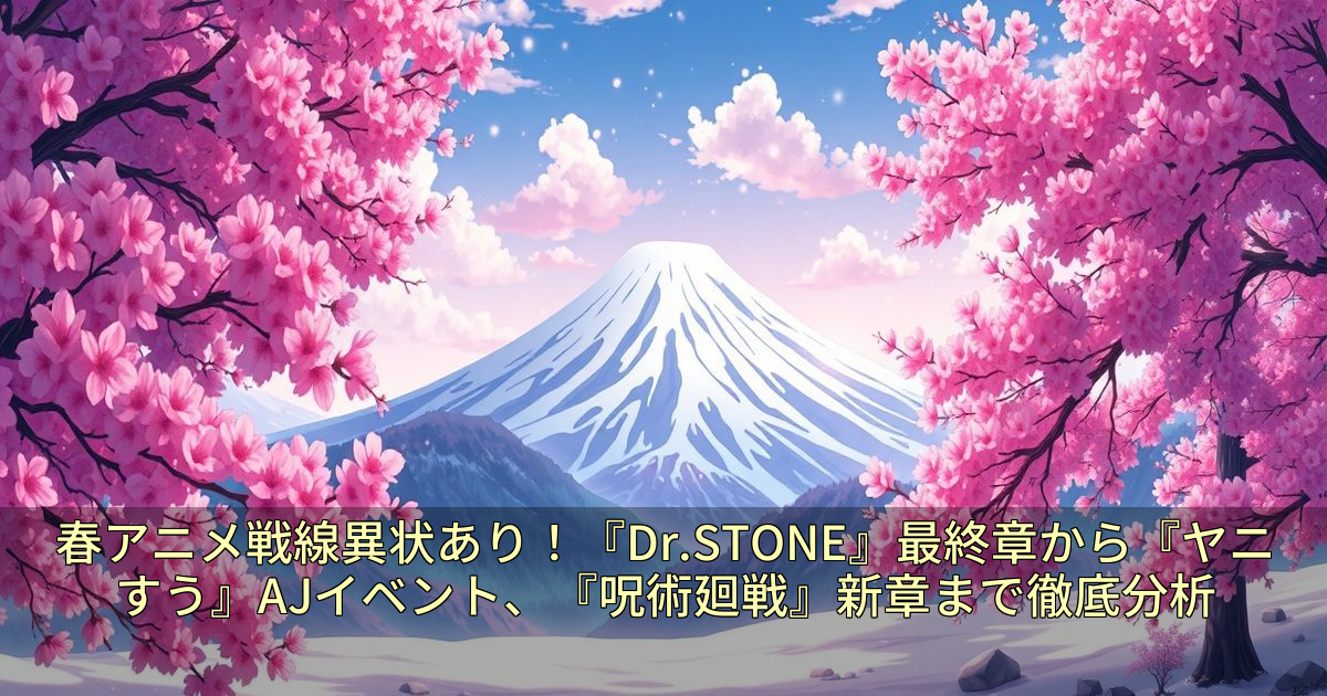 長年にわたり多くのファンを魅了し続ける大人気シリーズが、この春、新たな局面を迎えます。特に注目すべきは、ダークファンタジーの金字塔『呪術廻戦』と、科学で未来を切り拓く『Dr.STONE』の最新シーズンです。それぞれの作品が提示する壮大な物語の続きは、既に世界中のアニメファンから熱い視線を浴びています。これらのシリーズは、単なるアニメの枠を超え、現代のエンターテインメント文化において重要な位置を占めており、その最新展開はアニメ業界全体の動向を示すバロメーターとも言えるでしょう。