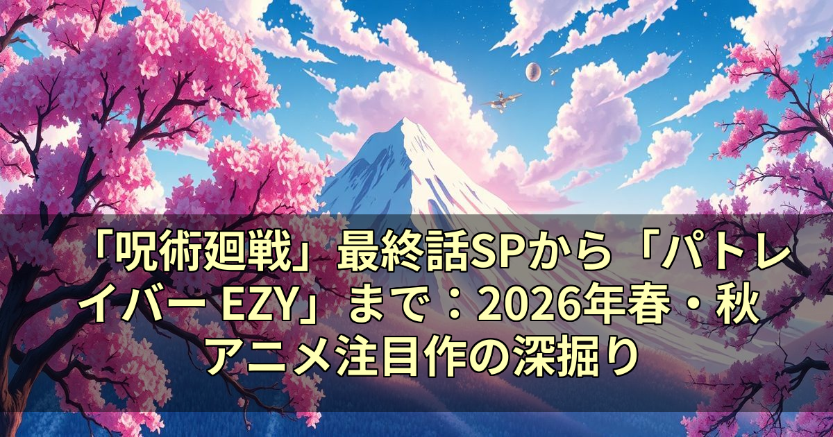 アニメドラマの世界は常に進化を続け、私たちに新たな感動と興奮を提供しています。特に、2026年の春から秋にかけては、人気シリーズの最新作から全く新しい挑戦的な作品まで、多岐にわたるラインナップが発表され、アニメファンのみならず多くの人々から熱い視線が注がれています。本記事では、TVアニメ「呪術廻戦」第3期「死滅回游 前編」の最終話拡大スペシャルや、長年のファンを熱狂させる「機動警察パトレイバー EZY File 1」の最新情報、そして子供から大人まで楽しめる「おしりたんてい」新作アニメの放送決定、さらには独特の世界観で話題を呼ぶ映画「おしり前マン~復活のおしり前帝国~」、そしてカツヲ原作の深夜アニメ「#ゾンビさがしてます」といった、注目すべき作品群に焦点を当てて深掘りします。