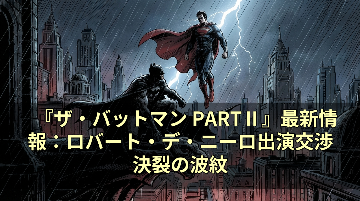 本記事では、本日明らかになったロバート・デ・ニーロ氏の出演交渉決裂というニュースを深掘りし、その背景にある『ザ・バットマン PARTⅡ』の制作状況、そしてクリストファー・デント役の重要性について詳しく解説します。また、このキャスティングを巡る動向が、今後の作品にどのような影響をもたらすのかについても考察していきます。