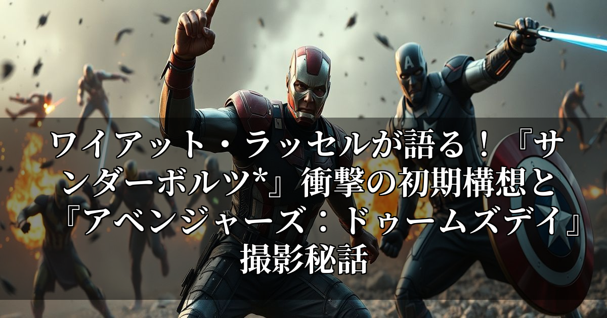 2026年3月31日、マーベル・シネマティック・ユニバース(MCU)のファンにとって、新たな情報が飛び込んできました。俳優ワイアット・ラッセルが、出演する待望の2作品、『サンダーボルツ*』と『アベンジャーズ:ドゥームズデイ』に関する衝撃的な裏話を明かしたのです。特に注目されたのは、『サンダーボルツ*』の初期構想に存在したとされる「全滅エンド版」の存在と、『アベンジャーズ:ドゥームズデイ』の撮影現場での共演者との絆についてです。