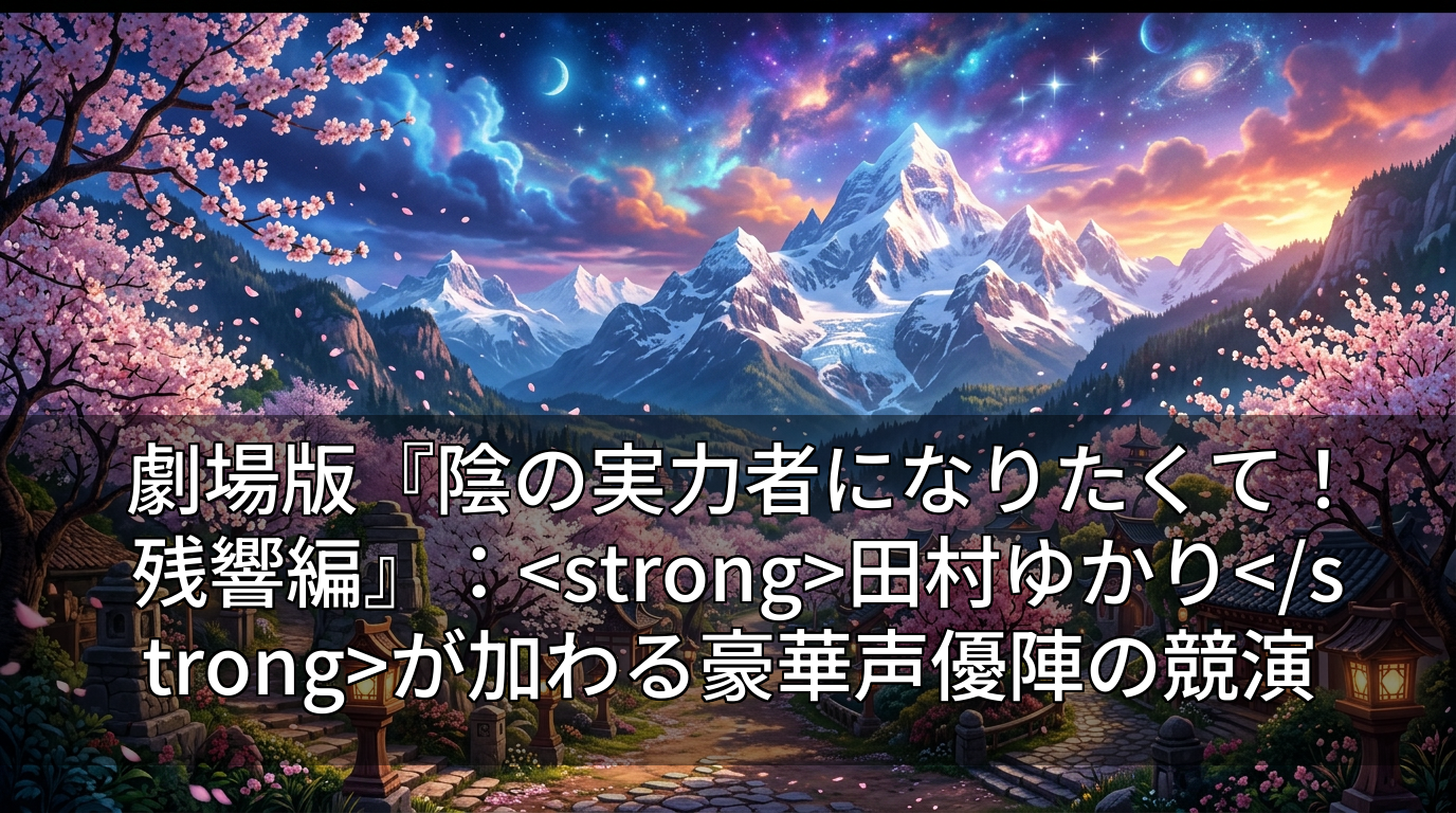 本日2026年4月11日に発表された『劇場版 陰の実力者になりたくて! 残響編』の最新情報は、多くのファンに大きな興奮をもたらしました。特に、新キャストとして田村ゆかりさんが加わり、新キャラクター朝倉ユウカを演じること、そして物語の舞台がシドの前世の地である日本となることは、シリーズに新たな息吹を吹き込むことでしょう。山下誠一郎さんが演じる主人公シドの多面的な魅力に加え、堀江由衣さん、水瀬いのりさん、子安武人さんといった実力派声優陣が織りなす重層的な演技が、異世界と現実が交錯する壮大な物語を一層深く、感動的に彩ります。彼らの声が、キャラクターたちの複雑な心情や、荒廃した日本で繰り広げられる緊迫したドラマを鮮やかに描き出し、観客を作品世界へと深く引き込むことは間違いありません。